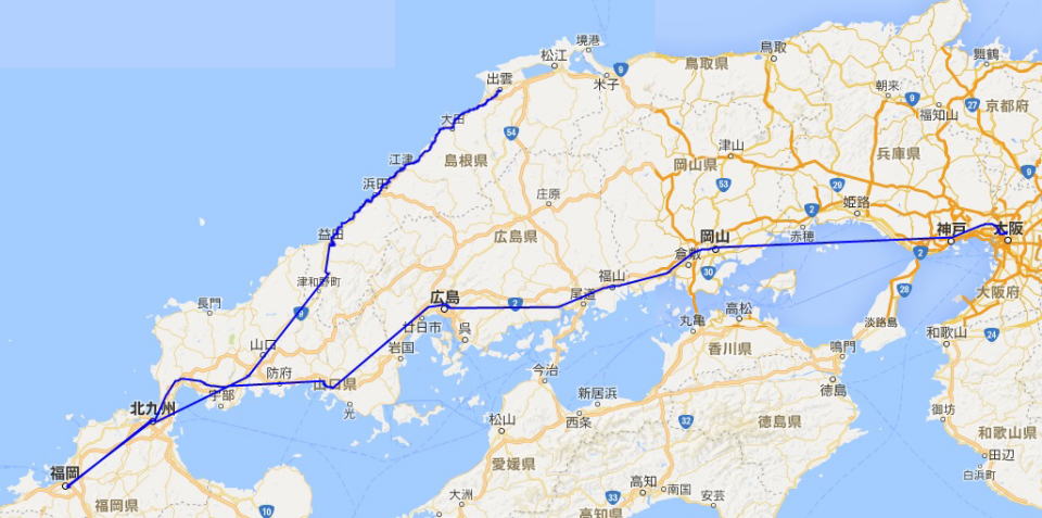 新大阪-博多(住吉神社散策)-新山口-益田(散策)-出雲市(泊)
