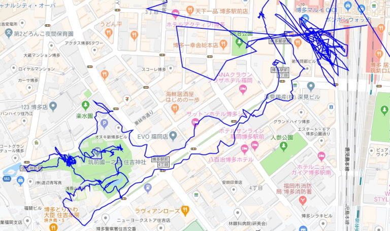 (住吉神社の散策。 GPSロガーのログデータで実際に移動した場所の軌跡を表示)