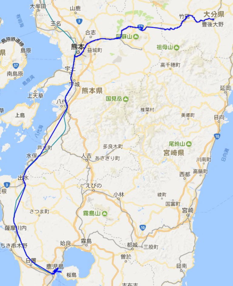鹿児島中央(鹿児島市内散策)-熊本-三重町(泊)