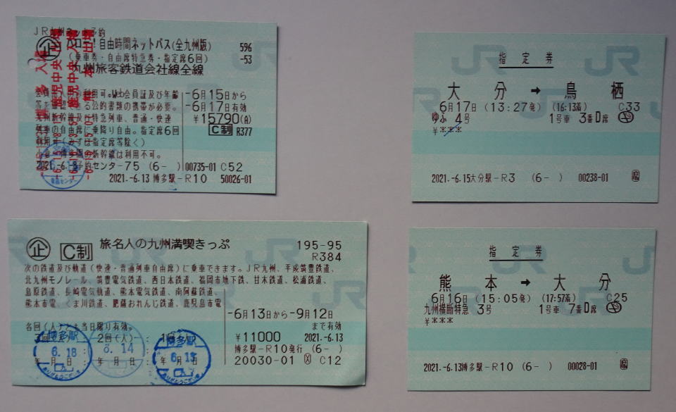 (ただし連続でなくても良い)JR九州線とほとんどの九州内の私鉄が乗り放題のキップであるがJR線は特急列車(九州新幹線を含む)には
