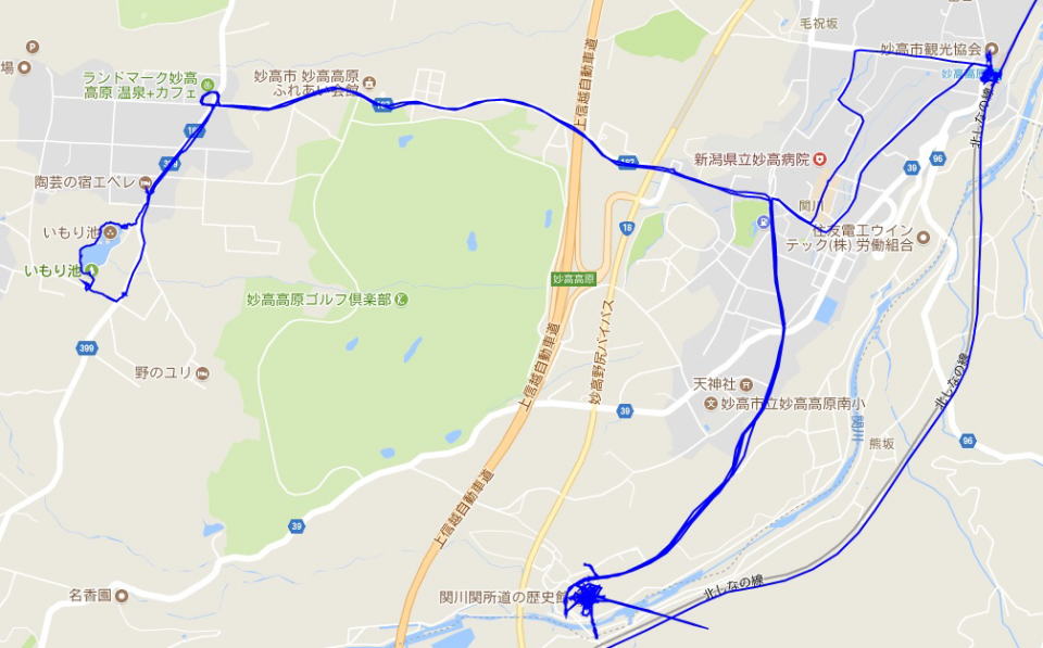 (妙高高原散策。 GPSロガーのログデータで実際に移動した場所の軌跡を表示)