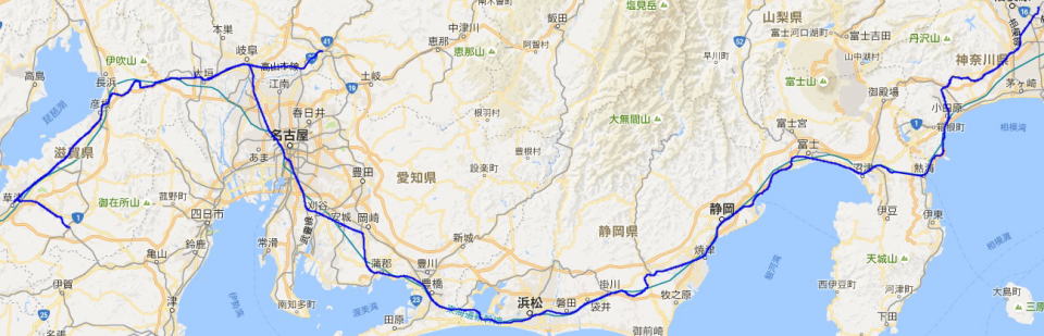 美濃太田-岐阜-米原-草津-貴生川-草津-米原-大垣-豊橋-浜松-静岡-沼津-小田原-自宅