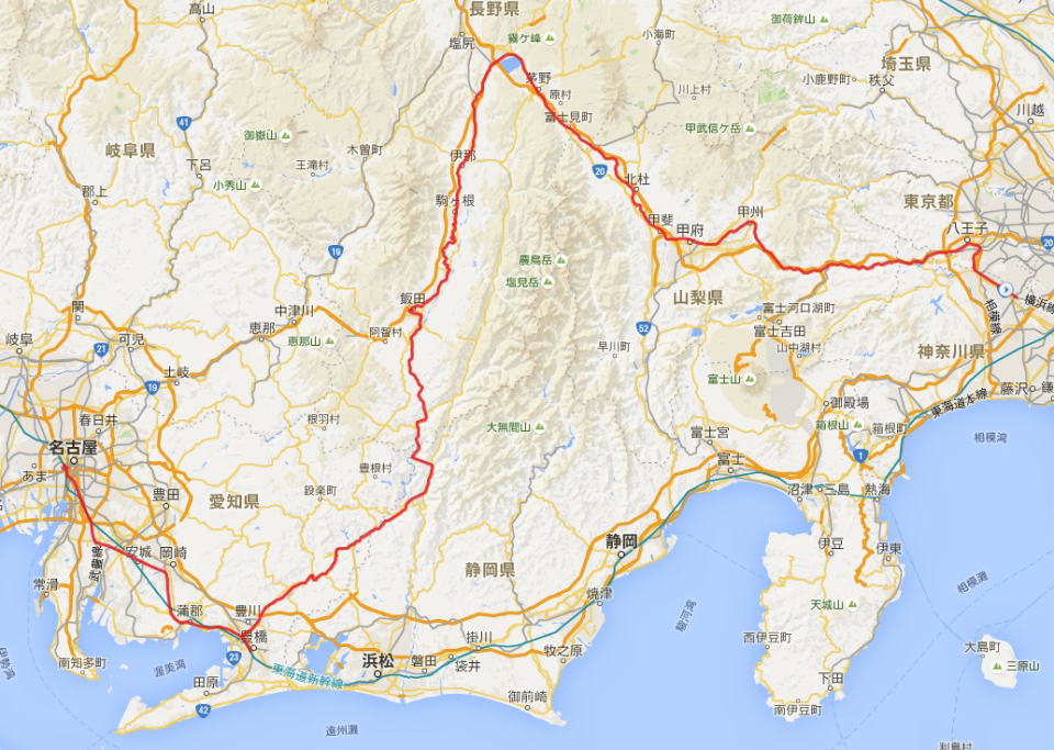自宅(町田)- 八王子 - 高尾 - 上諏訪 - 豊橋 - 名古屋(泊)