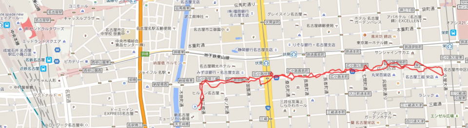 (名古屋市内散策 GPSロガーのログデータで実際に移動した場所の軌跡を表示)
