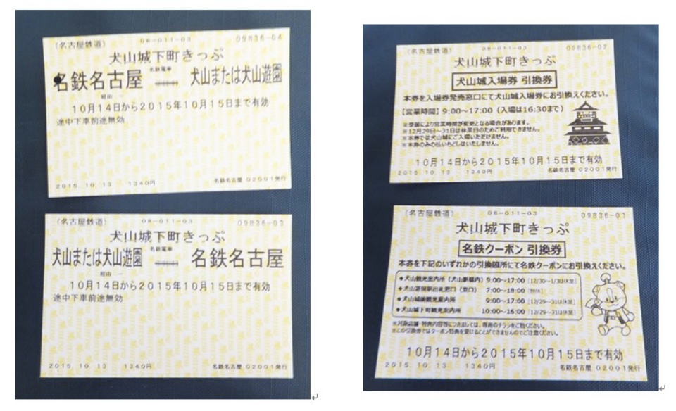 名古屋鉄道が発売している 「犬山城下町きっぷ」