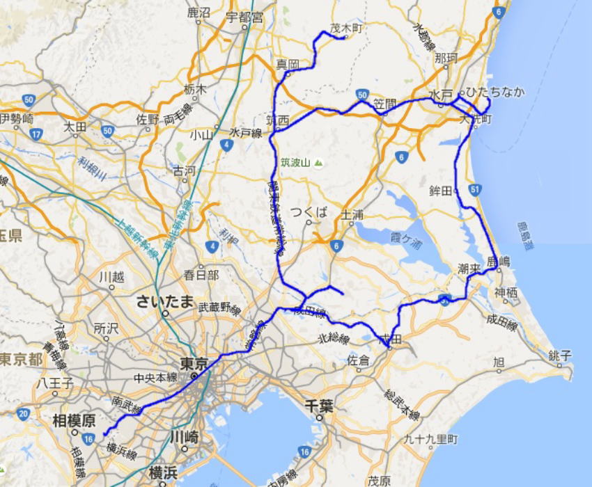 水戸から佐貫まで行くルートでは時間がかかり過ぎるため、潮来 → 佐原 → 成田 → 我孫子 → 取手 というルートを