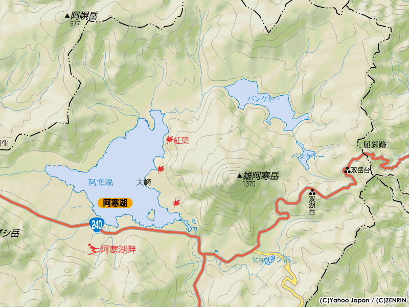走行するが、結構揺れるので自動車に酔う人はつらいかもしれない。 この林道はエゾマツ・トドマツ等の樹木に覆われているが、それでも進行方向右手に阿寒湖やパンケトー、両者をつなぐ