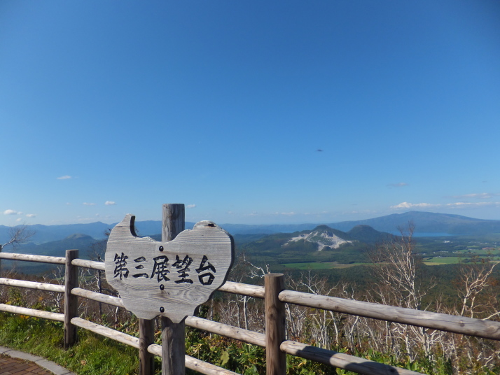 摩周第三展望台からの第一展望台方向の尾根道 摩周第三展望台からの摩周湖 摩周第三展望台から屈斜路湖方面を望む