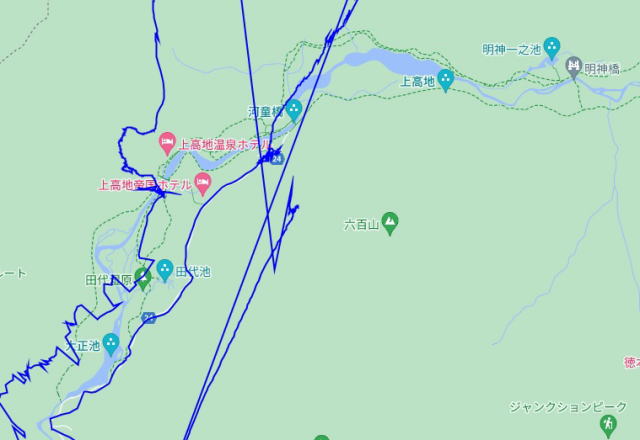(上高地散策。 GPSロガーのログデータで実際に移動した場所の軌跡を表示)