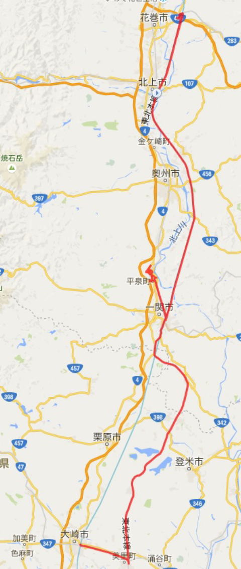 北上 - 新花巻(花巻散策)- 一ノ関 - 平泉(平泉散策)- 一ノ関 - 小牛田 - 古川 古川(泊)
