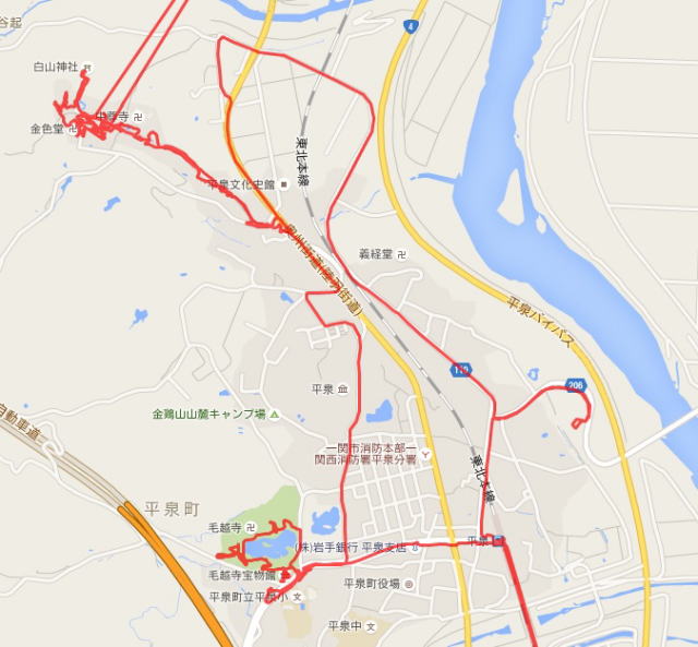 (平泉散策。 GPSロガーのログデータで実際に移動した場所の軌跡を表示)