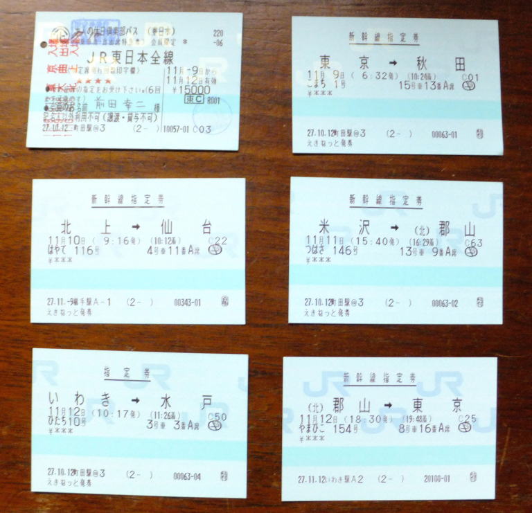 2015年6月下旬に続き「大人の休日倶楽部パス(東日本)」という4日間有効なフリーキップを使った旅を計画した。
