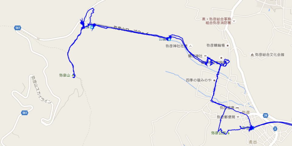 (彌彦神社、弥彦山、弥彦公園散策。 GPSロガーのログデータで実際に移動した場所の軌跡を表示)