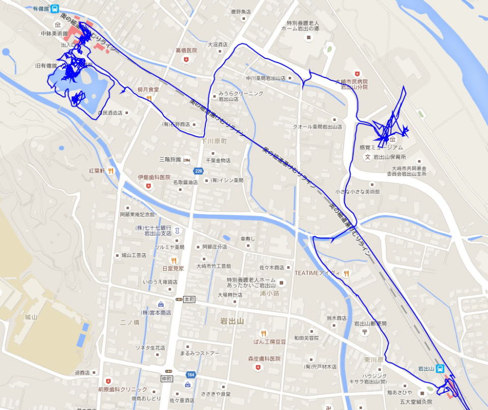 (感覚ミュージーアムと有備館散策。 GPSロガーを使って、ログデータから実際に移動した場所を表示。)