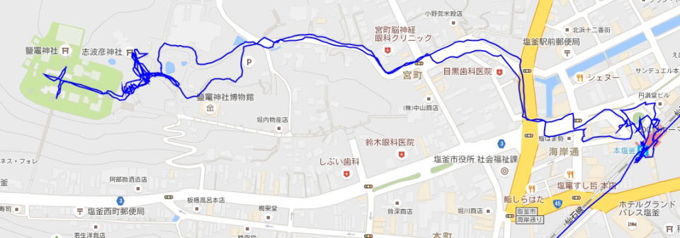 (塩竈神社散策。 GPSロガーを使って、ログデータから実際に移動した場所を表示。)