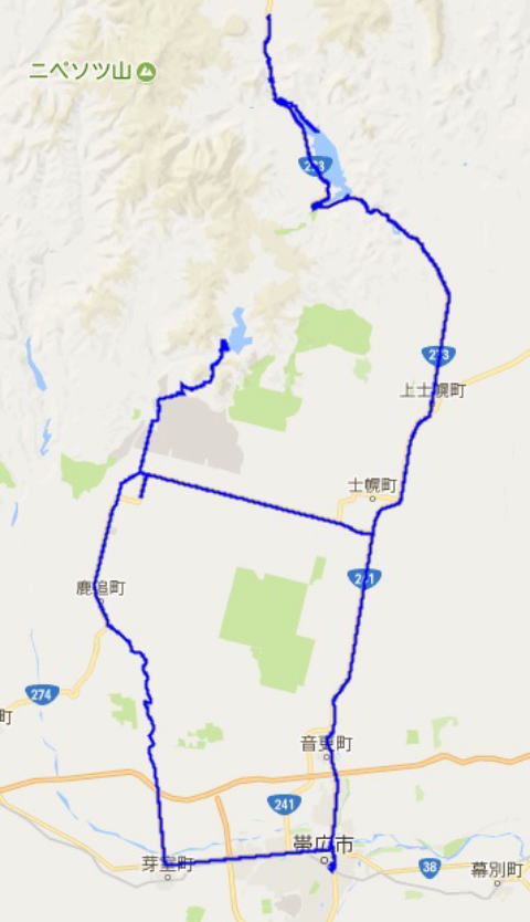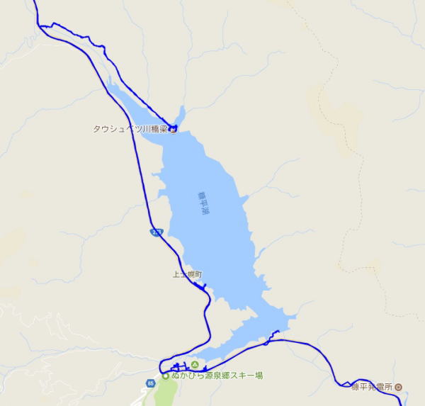 (糠平湖周辺散策。 GPSロガーのログデータで実際に移動した場所の軌跡を表示)