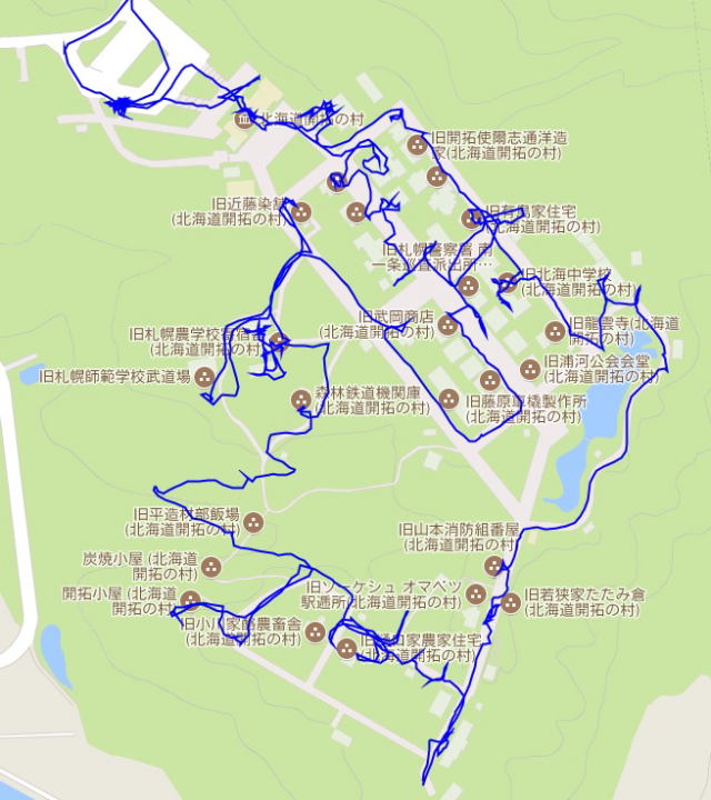 (北海道開拓の村散策。 GPSロガーのログデータで実際に移動した場所の軌跡を表示)