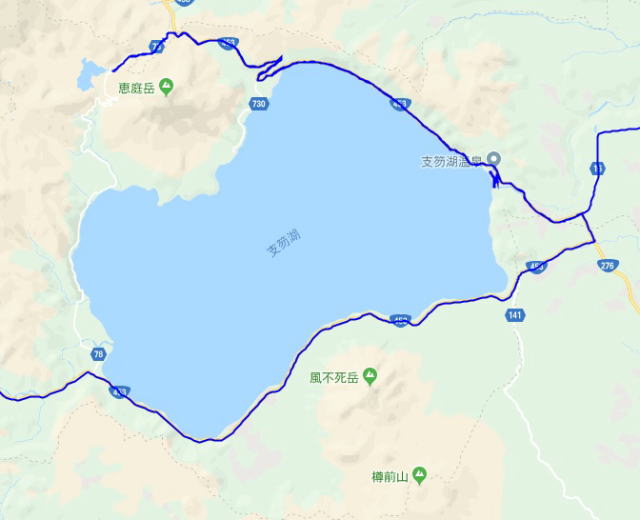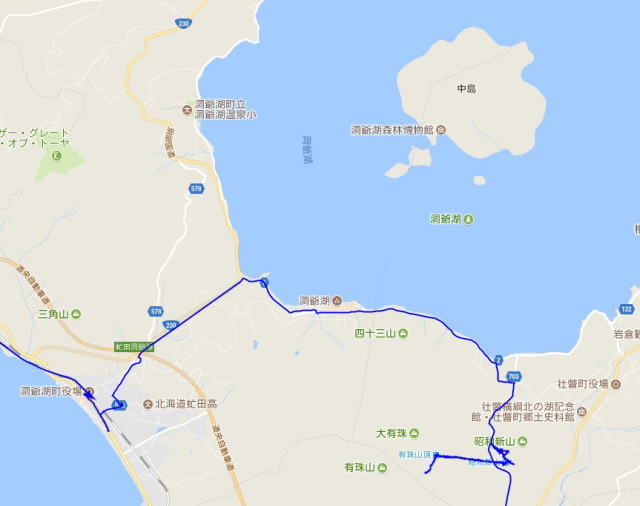 (支笏湖周辺散策。 GPSロガーのログデータで実際に移動した場所の軌跡を表示)
