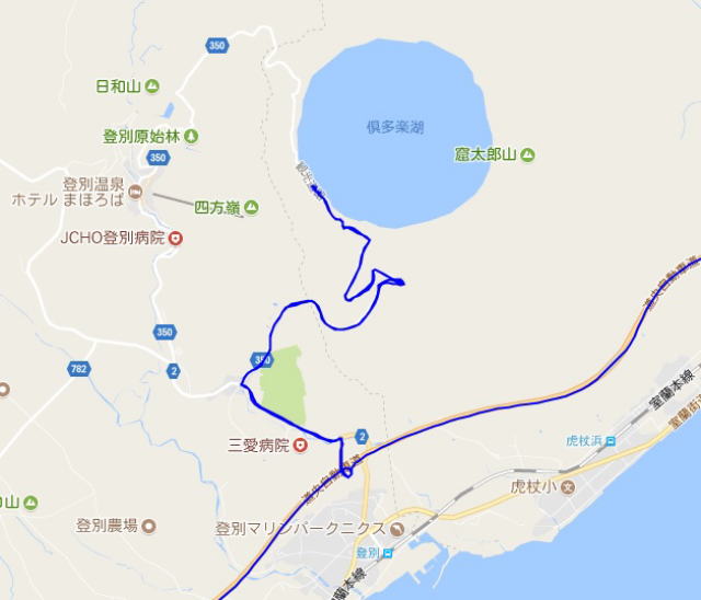 (倶多楽湖周辺散策。 GPSロガーのログデータで実際に移動した場所の軌跡を表示)