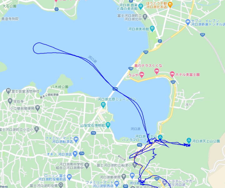 (河口湖散策。 GPSロガーのログデータで実際に移動した場所の軌跡を表示)