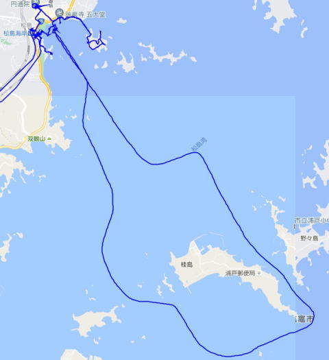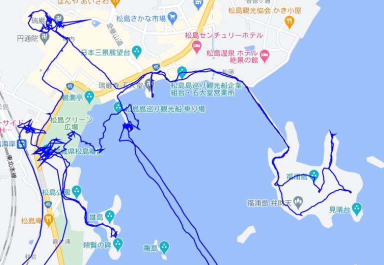 (松島散策。 GPSロガーのログデータで実際に移動した場所の軌跡を表示)