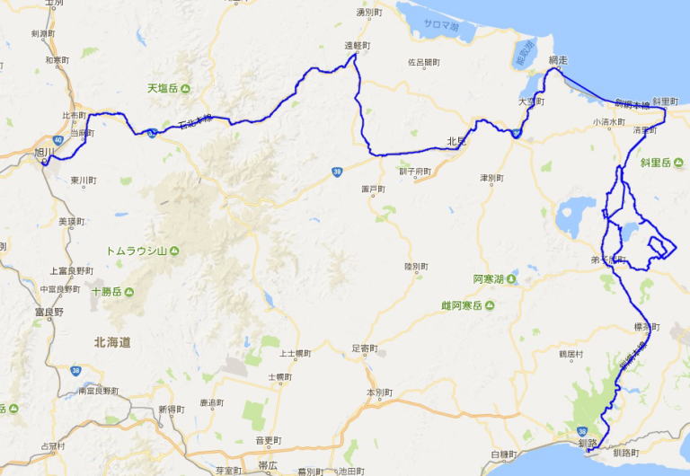 釧路-川湯温泉-川湯温泉BT(レンタサイクルで散策)-川湯温泉-網走-旭川(泊)