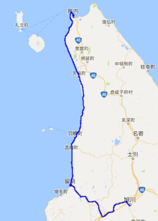 この日は、旭川でレンタカーを2日間借りて、留萌と日本海側の国道232号線を経由して
