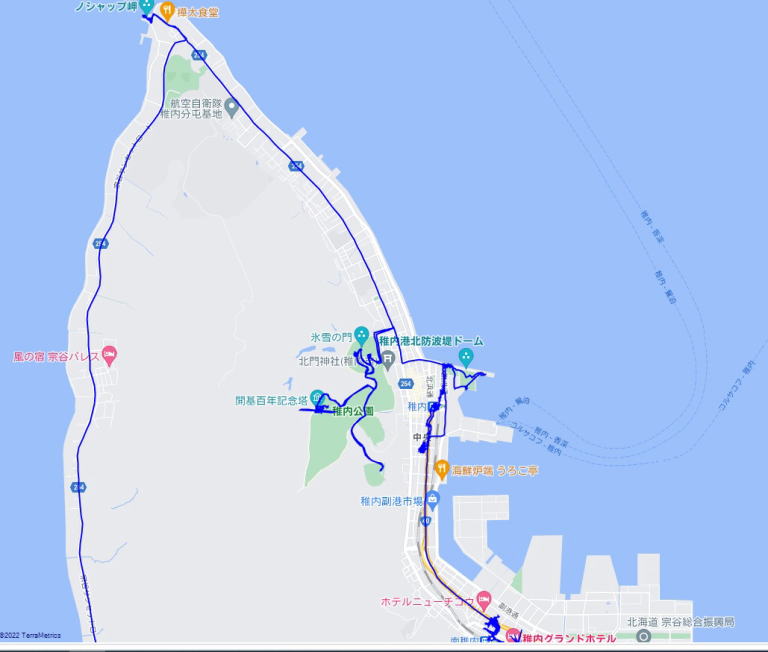 (稚内市内散策。 GPSロガーのログデータで実際に移動した場所の軌跡を表示)
