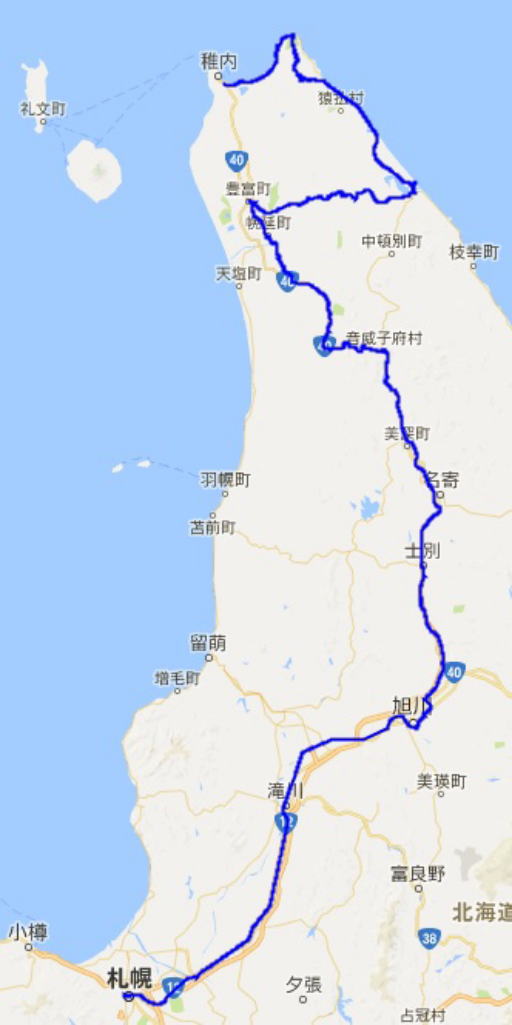 レンタカーで稚内-旭川間をドライブ。 その後列車で札幌へ移動。 札幌(泊)