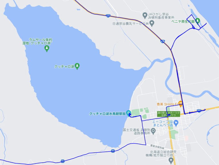 (浜頓別周辺の散策。 GPSロガーのログデータで実際に移動した場所の軌跡を表示)