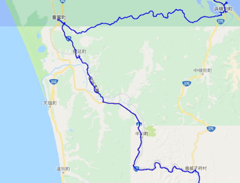 最初は道々256号線で宗谷本線に沿ったルートとなるが、途中から国道