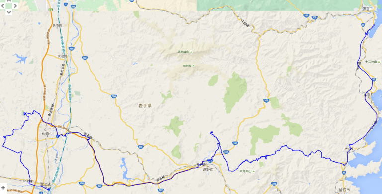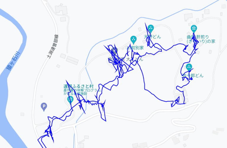 (遠野ふるさと村散策。 GPSロガーのログデータで実際に移動した場所の軌跡を表示)