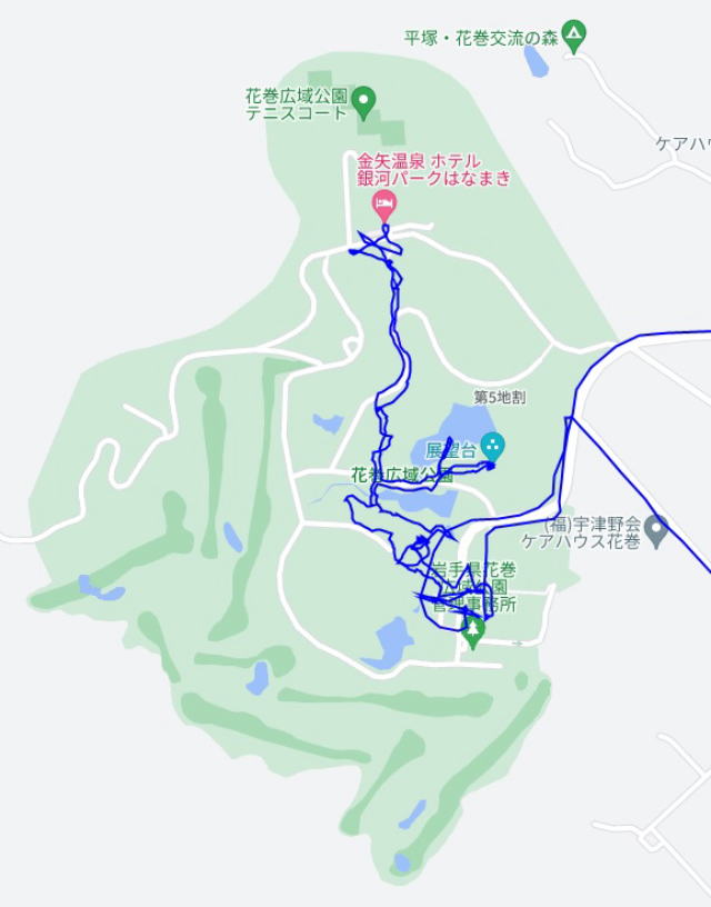(花巻広域公園散策。 GPSロガーのログデータで実際に移動した場所の軌跡を表示)