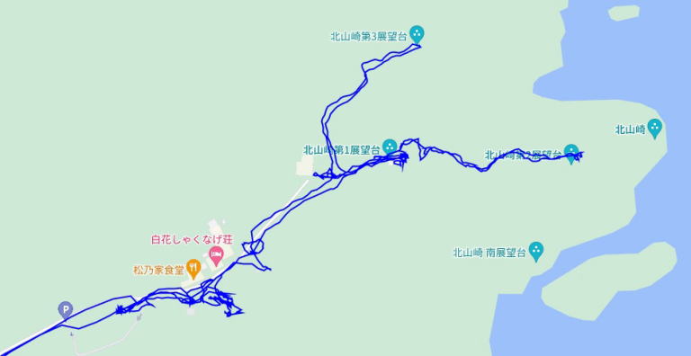 (北山崎周辺散策。 GPSロガーのログデータで実際に移動した場所の軌跡を表示)