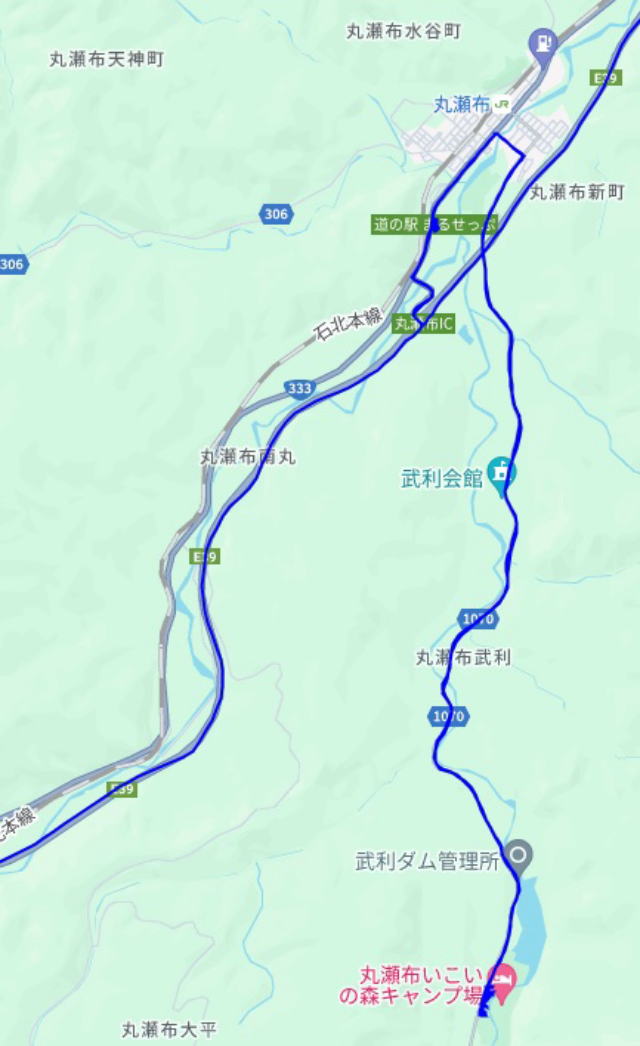 (丸瀬布森林公園いこいの森周辺散策。 GPSロガーのログデータで実際に移動した場所の軌跡を表示)