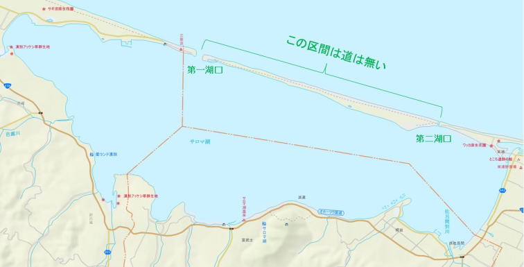 つながっているが、2つの湖口間には人が歩ける道がなく自然のままの状態である。実はサロマ湖には