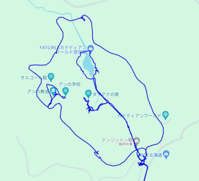 (カナディアンワールド公園の散策。 GPSロガーのログデータで実際に移動した場所の軌跡を表示)