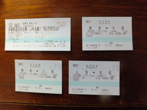 町田(自宅 3月23日夜発 小田急線)-小田原-大垣-米原-姫路-相生-糸崎-岩国-新山口着-下関-小倉-鳥栖(泊)