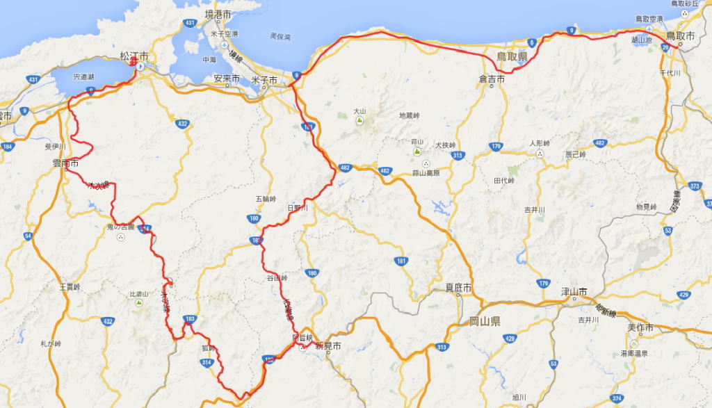 松江(散策)-宍道-備後横田-備後落合-新見-伯耆大山-鳥取(泊)