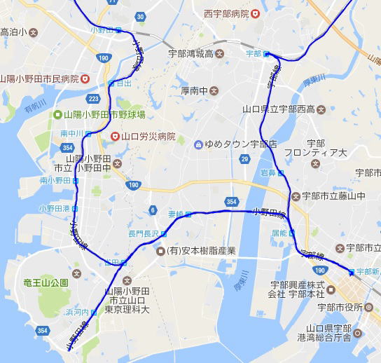 新山口から山陽本線で宇部まで行き、宇部から宇部線で宇部新川まで行き、そこから少し引き返して小野田線に入り雀田で長門本山行きの電車