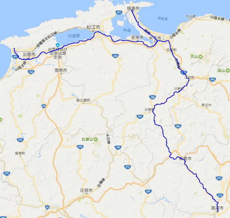 出雲市(出雲大社散策)-出雲市-米子-境港(境港散策)-米子-新見-備中高梁(泊)