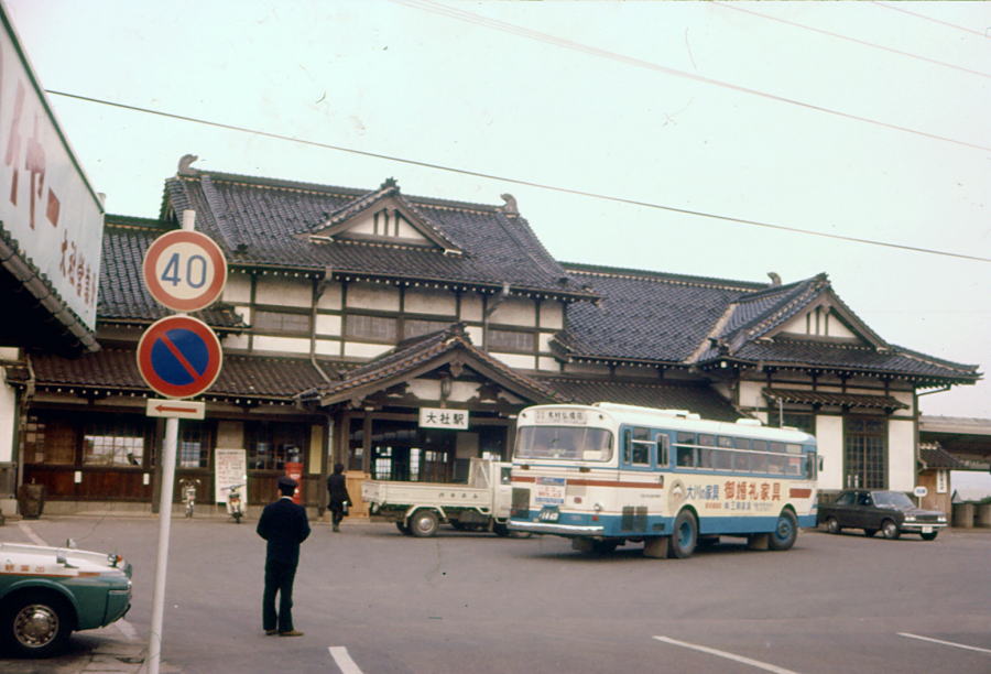 実は私も大学生時代にこの駅に来た事を記憶しており、当時スライド用のリバーサルフィルムで撮影した大社駅前の写真を見つけたので、とても懐かしく感じた。