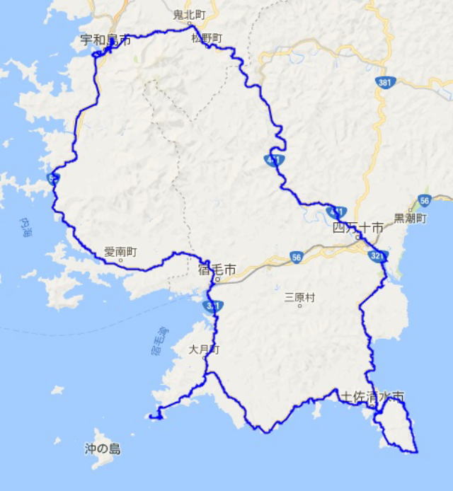 案内だったので、旧有料道路を避けて同じ道を繰り返し走ってしまったためである。 何とか宇和島市街地を抜けると、あとは快適な国道56号線を