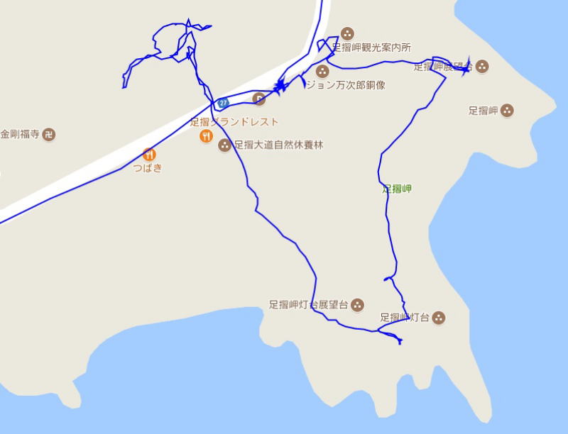 (足摺岬周辺の散策。 GPSロガーのログデータで実際に移動した場所の軌跡を表示)
