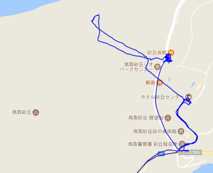 (鳥取砂丘の散策。 GPSロガーのログデータで実際に移動した場所の軌跡を表示)