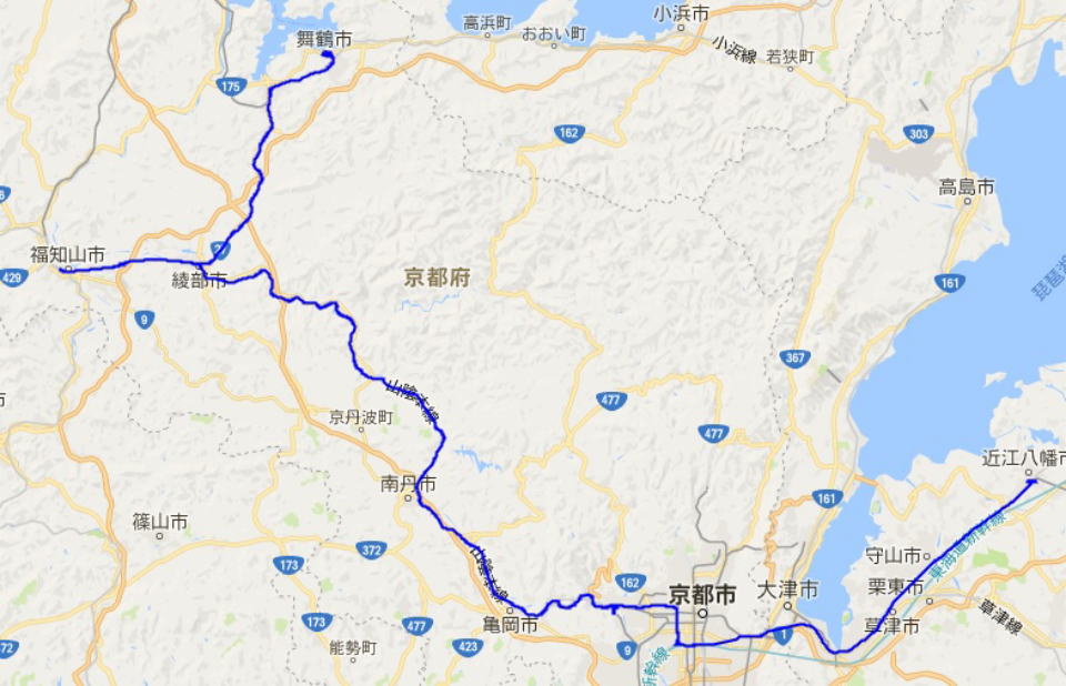 東舞鶴(舞鶴赤レンガパーク等散策)-西舞鶴(舞鶴公園/田辺城趾散策)-福知山-園部-亀岡-馬堀‥‥トロッコ亀岡-トロッコ嵯峨野(嵯峨野散策)-丹波口(京都鉄道博物館)-京都-近江八幡 近江八幡(泊)
