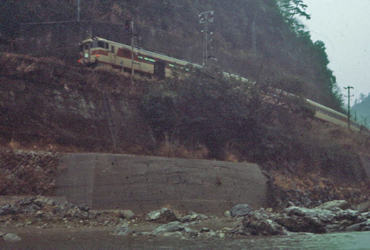 ため営業休止となっていたが、車窓から保津川下りの舟を見る事ができる。 実は約40年前に保津川下りの舟と山陰本線旧線に乗車した事があり、舟から列車を写した写真も残って