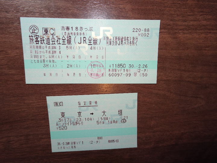 当初は3月25日(日)から6日間の予定であったが全車座席指定の臨時快速の「ムーンライトながら」の座席指定券が確保できず、