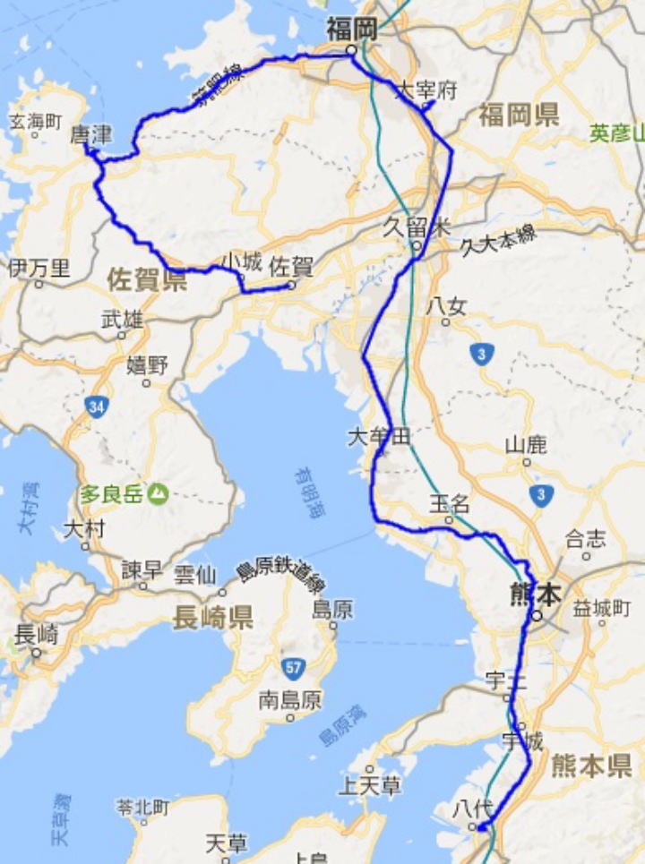 佐賀-唐津-西唐津-唐津(唐津市内散策)-虹ノ松原(虹ノ松原散策)-筑前前原-天神-西鉄天神-西鉄二日市-太宰府(太宰府散策)-