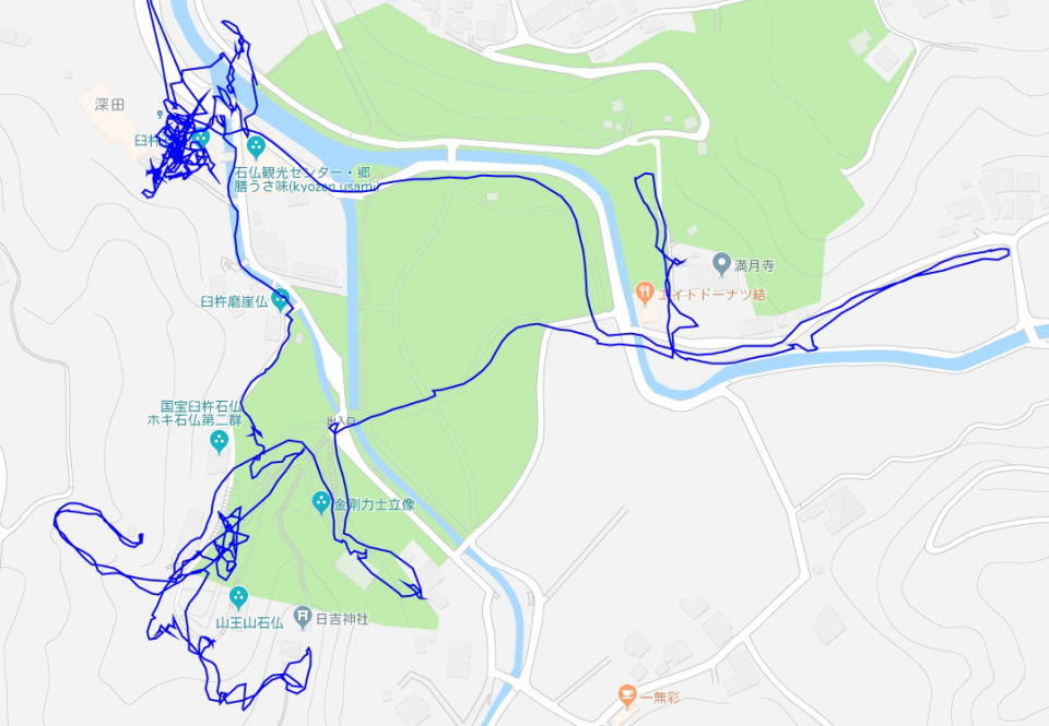 (臼杵大仏とその周辺の散策。 GPSロガーのログデータで実際に移動した場所の軌跡を表示)